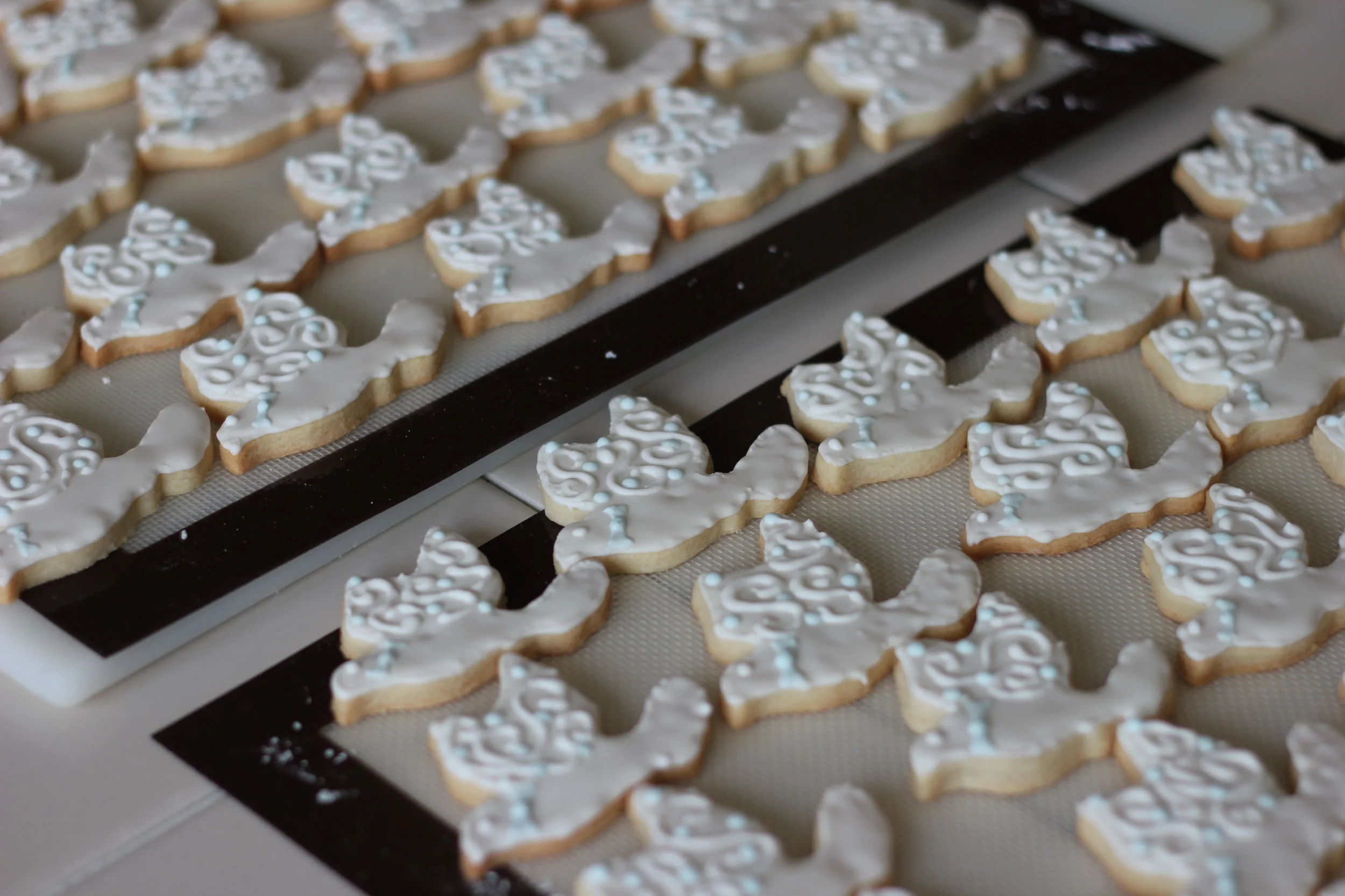 - It is so important to give royal icing enough time to dry in between steps or else the designs start to mix!